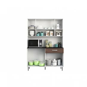 O Armário de Cozinha Gabi é ideal para quem deseja praticidade e funcionalidade em qualquer ambiente. Com design compacto e uma excelente disposição interna, traz na sua composição 08 portas sendo 02 com vidro, 01 gaveta com corrediça metálica deslizante, espaço para micro-ondas ou demais aparelhos de utilidade doméstica, prateleira e nicho organizador decorativo dando um charme especial à peça. Produto com pés reguláveis fabricado em MDP que garante a qualidade que só a Poliman oferece em seus produtos. Acabamento da Prateleira: Pintura Texturizada UV Escala de Brilho da Prateleira: Fosco Acabamento da Gaveta: Pintura Texturizada UV Escala de Brilho da Gaveta: Fosco Material do Puxador da Gaveta: Plástico Acabamento da Porta: Pintura Escala de Brilho da Porta: Fosco Material do Puxador da Porta: Plástico Acabamento dos Pés: Poliéster Altura dos Pés: 4 cm Altura Máxima dos Pés: 4.0000 Ambiente: Cozinha Ambiente Principal: Cozinha codigo_ean: 7894867021086 Complexidade da Montagem: Média: pode ser montado por mais de uma pessoa e/ou necessite de maior conhecimento para montagem Cor: Branco/Rovere/Amêndoa Cor: Branco/Rovere/Amêndoa Cor Flex: não Cor Interna: branco Escala de Brilho: Fosco Gaveta com Chave: Não Itens Inclusos: Armário de Cozinha, Manual de montagem e acessórios de montagem. Linha ou Coleção: Gabi Manual de Montagem e Instalação: https://product-hub-prd.madeiramadeira.com.br/280043/documents/303fbe40-f858-4cbb-b46b-27b7db2acb06nualmontagemkitcozinhagabi.pdf Material da Dobradiça/Corrediça da Porta: Metálica Material da Gaveta: MDF Material da Porta: MDP Material da Prateleira: MDP Material dos Pés: Plástico Montagem Flex: não Necessita Montagem: Sim Origem do Produto: Nacional Pés Reguláveis: Não Peso: 39,8 kg Peso Máximo por Gaveta: 5 kg Peso Máximo por Prateleira: 10 kg Possui Espelho: Não Possui Possui Pés: 05 Possui Portas: Sim Possui Prateleiras: Sim Possui Rodízio: Não Produto Montado: Sim Recomendações de Uso, Manutenção e Limpeza: Para limpeza utilize apenas pano umedecido com água. Resistente à Chuva: Não Rodízio com Trava: Não Sapatas Niveladoras: Não Sistema de Montagem: Parafusos, pregos, cavilhas. Suporta Até (kg): 26 kg Tipo de Corrediça da Gaveta: Metálica Simples Tipo de Dobradiça/Corrediça da Porta: Metálica Tipo de Madeira Maciça: MDP Tipo de Madeira Maciça da Porta: MDP Tipo de Madeira Maciça da Prateleira: MDP Tipo de Madeira Maciça do Puxador da Porta: Plástico Tipo de Puxador da Gaveta: Externo Tipo de Puxador da Porta: Externo