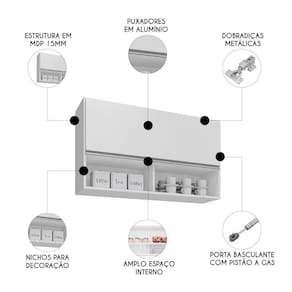 Com sua estrutura em MDP de 15mm e acabamento em BP, ele oferece durabilidade e um toque moderno ao ambiente. As dobradiças metálicas e o pistão a gás da porta basculante garantem um manuseio suave e , enquanto os nichos proporcionam um espaço adicional para decoração, permitindo que você personalize sua Cozinha com seus itens favoritos. O puxador em alumínio adiciona um detalhe sofisticado, fazendo deste Armário Aéreo não apenas um móvel prático, mas também uma peça de destaque na decoração da sua casa. Escolher um Armário de Parede é decidir por um ambiente mais organizado e agradável, onde cada objeto tem seu lugar, sem abrir mão da beleza e da qualidade.