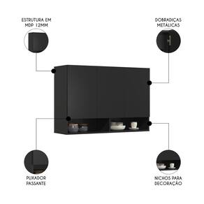 Descubra a versatilidade desse incrível Armário de Cozinha Aéreo 3 Portas 2 Nichos 91cm Milão Preto, da EJ Móveis! Esse item essencial para organização e praticidade pode ser aproveitado em diversos ambientes da sua casa, seja na cozinha, na lavanderia ou até mesmo como ponte sobre a cama no quarto.