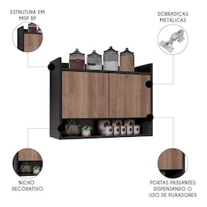 Além de otimizar a circulação e aproveitar o espaço superior da parede, esse armário aéreo é perfeito para manter as louças, utensílios de cozinha e demais objetos sempre organizados e com facilidade de acesso. Mais que funcionalidade, esse armário 2 portas também agrega um toque de elegância, já que conta com um nicho que pode ser aproveitado para dispor decorações. Ah, e essa peça combina com outros móveis, como balcão ou aparador, pois a sua tonalidade sóbria harmoniza facilmente com outros estilos e, assim, você deixa o ambiente mais completo. Demais, não é mesmo?!