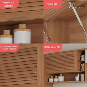 Produzido em MDP, o Armário de Cozinha Aéreo com 1 Porta Basculante e Nichos 120cm Multimóveis CR20395 é uma opção linda e muito funcional para a sua casa. Ideal para ampliar o espaço de armazenamento e organização, esse módulo foi desenvolvido com inspiração no que há de mais atual em tendência de móveis. A porta basculante ripada, no famoso estilo veneziano, comprova que a junção entre o clássico e o moderno traz personalidade à cozinha. O Armário é contornado por moldura em MDF - um elegante detalhe que reforça toda a qualidade que essa linha tem. Os nichos são ótimos para aqueles objetos queridinhos que deixam o lugar mais amado da casa ainda mais especial. Outro importante diferencial está na escolha das ferragens: a porta é equipada com pistão a gás componente que garante mais sustentação e segurança, além de permitir que o movimento de abertura seja mais suave. O puxador é de alumínio muito mais resistente.