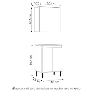 Peso Suportado: 20 kg no Balcão, 15 kg no Aéreo, ambos distribuídos.
