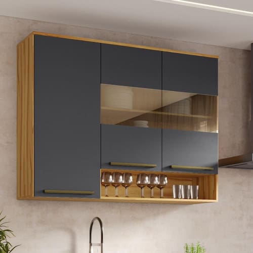 O Armário Aéreo Triplo de Cozinha 3 Portas Com Nicho da linha Nápoli Prime, favorece a funcionalidade da sua cozinha, simplificando a rotina na sua área gourmet, onde você consegue trazer uma decoração mais dinâmica para a sua casa, oferecendo ainda mais espaço de armazenamento para os itens da sua cozinha. Completando a linha Nápoli Prime, conheça o Balcão, Paneleiro Simples, Paneleiro Duplo e Aéreo Geladeira com Adega, que irão proporcionar uma cozinha ainda mais completa. O Aéreo Triplo Nápoli Prime é um produto 100% MDF, o seu acabamento é em pintura U.V. e fita de bordo FF. Possui puxador em ABS, as suas portas são de MDF com vidro reflecta e Nicho.