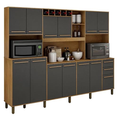 Armário de Cozinha Ágata Cinamomo Grafite - Valdemóveis