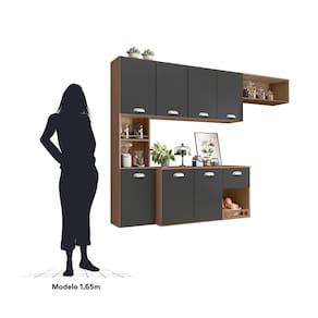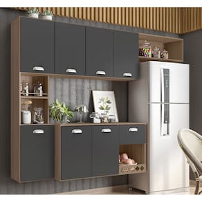Armário de Cozinha Ambiente Suspensa Mila 180m Carvalho/Grafite Poliman - Marrom