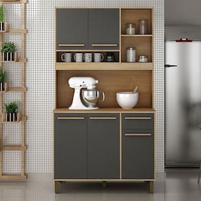 Armário de Cozinha Ametista Cinamomo Grafite - Valdemóveis