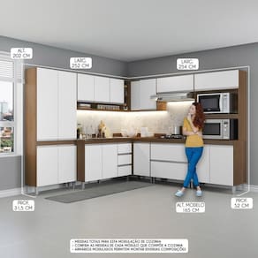 Armário De Cozinha Canto Com Balcão Pia Sabrina Menu Móveis Branco A Cozinha Sabrina Modulada foi desenvolvida para atender todas as suas necessidades do dia a dia com um design moderno, funcionalidade e versatilidade. A Cozinha Modulada e a tendencia do momento e foi arquitetada com modulos uteis que vao facilitar a sua rotina diaria, preparos dos alimentos e armazenamento dos utensilios e mantimentos, mantendo sua cozinha sempre organizada. Por se tratar de armarios de cozinha modulados voce pode ajustar os modulos conforme o espaco disponivel e montar diversas modulacoes diferentes para deixar o ambiente muito mais aconchegante. A elegancia fica por conta dos puxadores em perfil e os pes dando um toque unico de sofisticacao. A Cozinha Sabrina e produzida com materiais de excelente qualidade, garantindo a durabilidade e vida util. O melhor em moveis no design atual aliando conforto, qualidade e otimos precos! Caracteristicas: Produzida em MDP de 15 mm Acabamento UV Portas com Dobradica Metalica Porta Basculante com Pistao a Gas Gavetas com Corredica Telescopica Puxadores Perfil em ABS Pes com Regulagem em ABS Balcao para Cooktop possui Tampo com Ranhura que pode ser utilizado com cooktop de 5 bocas, caso nao cortar pode utilizar normalmente. NAO acompanha TAMPO e PIA