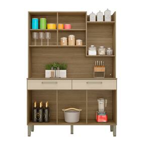 O Kit Cozinha irá se tornar o charme de sua cozinha, seu design diferenciado dispõe de um nicho para decoração superior podendo ser utilizado para vasos, flores e outros. Tem a sua disposição de um grande espaço para Eltrodomésticos podendo acomodar um micro-ondas, sua matéria prima valoriza o meio ambiente sendo feita de madeira de reflorestamento.