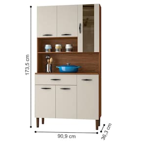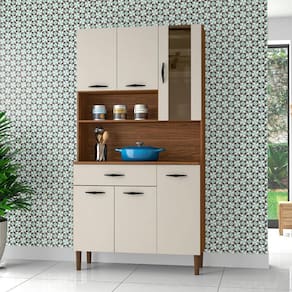 O Kit Cozinha é prático e versátil, ideal para diversos ambientes, com 6 portas (1 de vidro) e 1 gaveta.