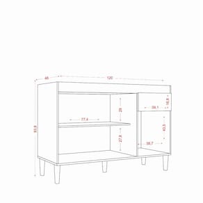 "Produzido em MDP de 15mm e 12mm de espessura, proporcionando resistência e durabilidade. Sistema de sustentação com pés proporcionando maior firmeza ao produto. Puxadores de Plástico dando maior resistência. Dobradiças das portas metálicas dando maior durabilidade e resistência ao abrir e fechar as portas. Acabamento em verniz texturizado fosco e verniz brilho nas portas, garantindo a conservação do móvel, além de manter a beleza constante oferece ao móvel, resistência e durabilidade prolongando a vida útil do produto.
