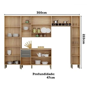 Armário de Cozinha com Balcão e Tampo 13 Portas 2 Gavetas Xangai Slim 100% Mdf Vidro Reflecta Amêndoa/Cinza - Pnr Móveis