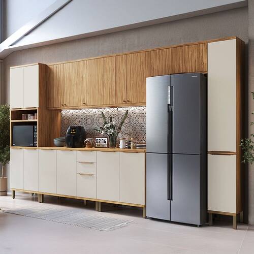 O(a) Armário de Cozinha com Balcão e Tampo 16 Portas 3 Gavetas Nice Plus 100% Mdf Amêndoa/Off White - Pnr Móveis é produzido em 100% MDF na escala de brilho Semi-Brilho, e possui um grau de dificuldade de montagem: Médio. Seu revestimento/acabamento é: Pintura UV.