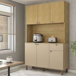 O(a) Armário de Cozinha com Balcão Evermore 6 Portas 1 Gaveta Ripado 3d Freijó/Vanilla - Loja é produzido em MDP na escala de brilho Fosca com Textura, e possui um grau de dificuldade de montagem: Médio.