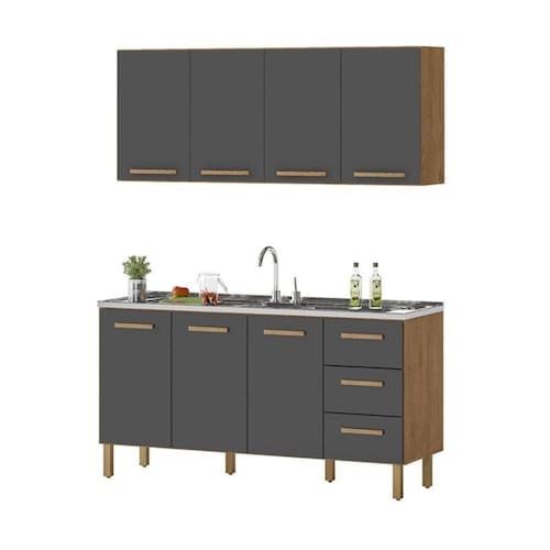 Requer montagem: Sim | Peso do Produto: 80 | Cor: Amêndoa/Grafite | Tonalidade: Marrom Claro | Altura: 83 | Largura: 157 | Acompanha Pia: Não | Acabamento: PiNTURA UV | Marca: Milani Movelaria | Fabricante: Milani Movelaria | Tipo de móveis de cozinha: Armario | Profundidade: 50 | Materiais do corpo: MDP 15MM | Modelo: Armário de Cozinha com Balcão Fortaleza 3 portas Amêndoa Grafite | Inclui manual de montagem: Sim | Quantidade de caixas de embalagem: 2
