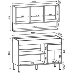 Balcão Gabinete: 120 x 84,5 x 51,8 cm.