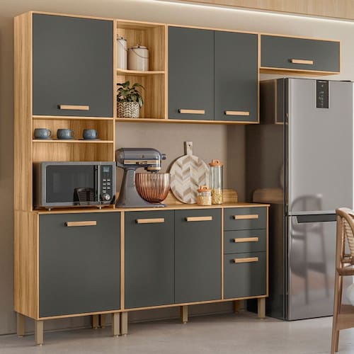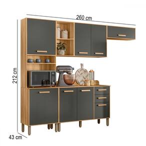 O(a) Armário de Cozinha com Balcão Sérvia 8 Portas 2 Gavetas Freijó/Cinza - Pnr Móveis é produzido em MDP na escala de brilho Fosco, e possui um grau de dificuldade de montagem: Médio.