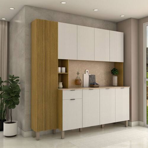 O(a) Armário de Cozinha com Balcão Talim 9 Portas 1 Gaveta Freijó/Artico - Loja é produzido em MDP na escala de brilho Semi-Brilho e Semi-Fosco, e possui um grau de dificuldade de montagem: Médio.