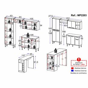 Cozinha - Altura: 191cm | Largura: 231cm | Profundidade: 45cm