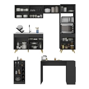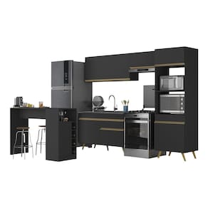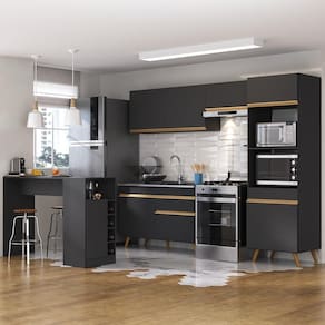 Armário de Cozinha com Bancada/Mesa Gourmet Veneza Multimóveis MP2174 - Preto