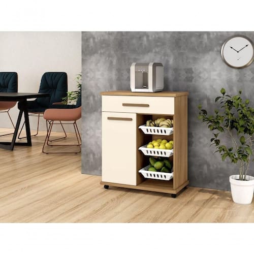 Que tal dar mais vida a sua cozinha com esta belíssima e prática fruteira? Perfeita para agregar mais funcionalidade a este ambiente. Com um design versátil, conta com 03 cestos de plásticos para você colocar as frutas e legumes sendo possível retira-los, facilitando na hora da limpeza. Produto desenvolvido para deixar a sua cozinha mais bela e funcional