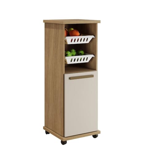 A Fruteira Paraná é prática e versátil, pois tem um design compacto e multifuncional. Conta com 02 cestos de plásticos removíveis para você colocar as frutas e legumes. Os pés são em rodízios possibilitando mover para todos os lugares. Possui uma porta e uma prateleira o que faz da organização de objetos, condimentos e utensílios muito mais prática.