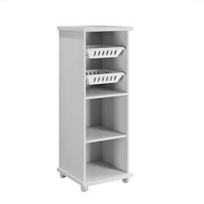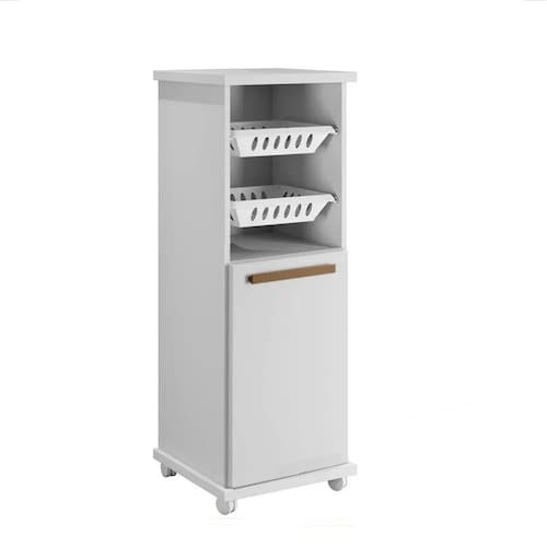 A Fruteira Paraná é prática e versátil, pois tem um design compacto e multifuncional. Conta com 02 cestos de plásticos removíveis para você colocar as frutas e legumes. Os pés são em rodízios possibilitando mover para todos os lugares. Possui uma porta e uma prateleira o que faz da organização de objetos, condimentos e utensílios muito mais prática. \nEspecificações do Produto Montado: Altura: 103 cm Largura: 39 cm Profundidade: 39 cm Peso: 18 Kg Quantidade de Volume: 1\nGarantia: 3 Meses Material da estrutura: MDP/MDF Número de Portas: 01 Número de Prateleiras: 01 Número de Gavetas: N/I Número de Cestos: 02 Possui vidro: Não Possui rodízio: Sim\nAtenção: "Disponibilidade" é o prazo para o produto encomendado estar disponível para a transportadora; A transportadora se isenta de efetuar a entrega com subida de escada ou içar produtos; Pode existir diferença de tonalidade entre a foto e o produto devido ao tratamento da imagem e à calibração de cores do monitor; Não oferecemos serviço de montagem - quando necessário o produto acompanha manual; Itens que decoram o ambiente nas imagens não acompanham o produto