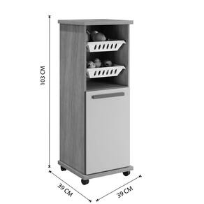 A Fruteira Paraná é prática e versátil, pois tem um design compacto e multifuncional. Conta com 02 cestos de plásticos removíveis para você colocar as frutas e legumes. Os pés são em rodízios possibilitando mover para todos os lugares. Possui uma porta e uma prateleira o que faz da organização de objetos, condimentos e utensílios muito mais prática. \nEspecificações do Produto Montado: Altura: 103 cm Largura: 39 cm Profundidade: 39 cm Peso: 18 Kg Quantidade de Volume: 1\nGarantia: 3 Meses Material da estrutura: MDP/MDF Número de Portas: 01 Número de Prateleiras: 01 Número de Gavetas: N/I Número de Cestos: 02 Possui vidro: Não Possui rodízio: Sim\nAtenção: "Disponibilidade" é o prazo para o produto encomendado estar disponível para a transportadora; A transportadora se isenta de efetuar a entrega com subida de escada ou içar produtos; Pode existir diferença de tonalidade entre a foto e o produto devido ao tratamento da imagem e à calibração de cores do monitor; Não oferecemos serviço de montagem - quando necessário o produto acompanha manual; Itens que decoram o ambiente nas imagens não acompanham o produto