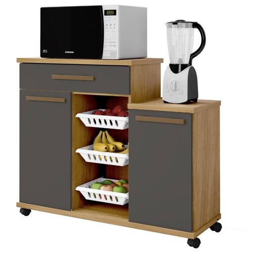 Armários são indispensáveis e essenciais na cozinha, proporcionam praticidade e versatilidade para o dia a dia, que de fato é o que os consumidores procuram. Ter à mão tudo o que você precisa de uma maneira simples e rápida é muito importante. A Fruteira Teresina vai trazer mais organização e harmonia a sua cozinha. Ela conta com 3 cestos removíveis, 2 portas, 1 gaveta, e rodízios para auxilia-lo\nEspecificações do Produto Montado Altura: 88 cm Largura: 107 cm Profundidade: 39 cm Peso: 37Kg Quantidade de Volume: 1\nGarantia: 3 Meses Número de Portas: 02 Número de Prateleiras: 01 Número de Gavetas: 01 Número de Cestos: 03 Possui vidro: Não Possui rodízio: Sim \nObservações: Não oferecemos serviço de montagem, mas todos os produtos possuem manual de montagem com o passo a passo. Recomendamos contratar um profissional de montagem. Pode existir alguma diferença de tonalidade entre a foto e o produto, devido ao tratamento de imagens e à calibração de cores do monitor