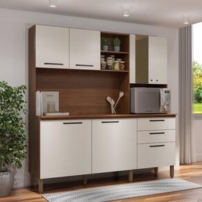 O Armário possui 7 portas sendo um com vidro reflecta e 2 gaveta e 1 tampo destaca-se por sua praticidade e eficiência de uso, podendo ser utilizada como complemento de cozinha.