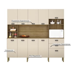 E não podemos esquecer do nicho para forno elétrico ou micro-ondas, com um espaço amplo para garantir a praticidade na hora de cozinhar e utilizar no dia a dia.