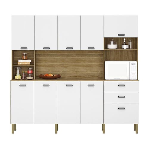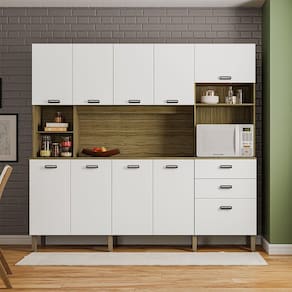As 10 portas do Armário Sense proporcionam compartimentos amplos e bem distribuídos, permitindo que você guarde desde panelas até louças, mantendo tudo sempre ao seu alcance. As 2 gavetas extras são ideais para organizar talheres, panos de prato e outros itens menores, garantindo que sua cozinha esteja sempre arrumada e funcional.