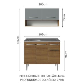 - 44 cm de profundidade no balcão e 27 cm de profundidade no aéreo
