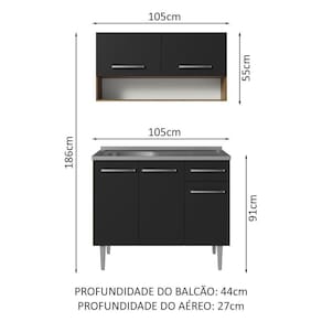 - 44 cm de profundidade no balcão e 27 cm de profundidade no aéreo