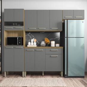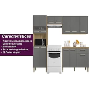 Material: MDP | Cor: Nogueira/Off White | Cômodo Indicado: Cozinha | Dimensões do Produto (A X L X P): 193 x 250 x 42 | Possui Prateleira: Sim | Possui Gaveta: Sim | Tipo da Corrediça da Gaveta: Metálica | Possui portas: Sim | Quantidade de portas: 12 Portas | Tipo de Porta: Bater | Possui porta Basculante: Não | Possui Pistão á Gás: Não | Possui Nichos: Sim | Possui pés: Sim | Possui Vidro: Sim | Quantidade de Vidros: 2 | Peso do Produto (Kg): 87.2 | Altura do Produto (cm): 193 | Largura do Produto (cm): 250 | Comnto do Produto (cm): 36 | Nome do Simples no Fornecedor: Versalhes | Garantia do Fabricante: 90 dias | Instruções/Cuidados: Evite contato com líquidos. Nada de lavar os móveis. Móveis não gostam de umidade. Não deixe o móvel exposto ao sol. Os acessórios também precisam de limpeza. | Precisa de Montagem: Sim, a montagem é simples mas sugerimos a contratação de algum experiente de sua preferência | Material da Estrutura: MDP | Necessita Fixação na Parede: Não | Conteúdo Embalagem: Cozinha Compacta Versalhes | Origem: Nacional | Estado de Origem: Paraná | Quantidade de Volumes: 3 | Peso Bruto (volume 01): 26,8 | Comnto x Largura x Altura (volume 01): 180 x 38 x 8 | Peso Bruto (volume 02): 30,4 | Comnto x Largura x Altura (volume 02): 121 x 60 x 7 | Peso Bruto (volume 03): 30 | Comnto x Largura x Altura (volume 03): 124 x 67 x 7 Cor: Freijó/Gris