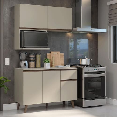 A Cozinha Compacta de 120 cm da linha Nice é a solução ideal para quem precisa de praticidade. Possui módulos essenciais para o dia a dia, aproveitando bem o espaço disponível. Um dos grandes diferenciais dessa cozinha é o nicho aéreo, que oferece espaço para acomodar forno ou micro-ondas, otimizando ainda mais a organização e funcionalidade do ambiente.