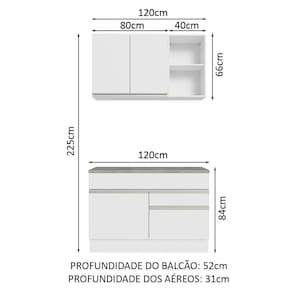 - 52 cm de profundidade no balcão e 31 cm nos aéreos