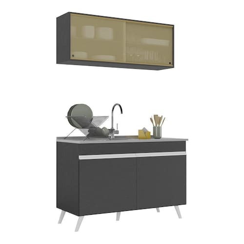 Armário De Cozinha Compacta 120cm Veneza Multimóveis V2140 Preto/branco Preto/branco