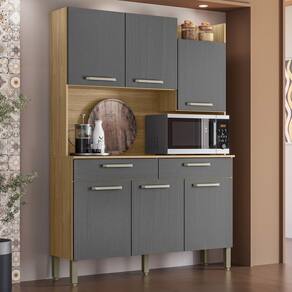 Armário de Cozinha Compacta 132cm Stella Plus Freijó/Gris Z06 - Mpozenato
