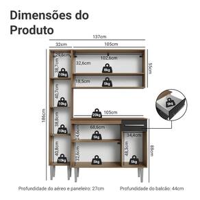 - 44 cm de profundidade nos balcões e 27cm nos aéreos/paneleiro