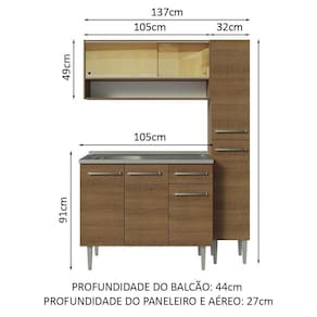 - 44 cm de profundidade no balcão e 27 cm de profundidade no aéreo e no paneleiro