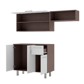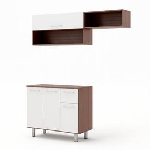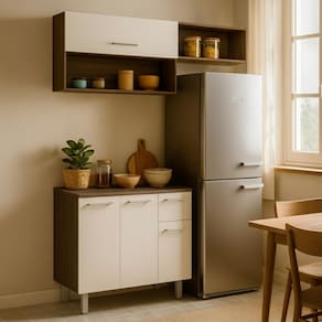 PRINCIPAIS BENEFÍCIOS: Ideal para cozinhas compactas: Aproveitamento inteligente do espaço sem abrir mão da elegância. Amplo espaço de armazenamento: Acomoda utensílios, louças e alimentos com praticidade. Design moderno e versátil: Combina com qualquer estilo de decoração. Estrutura resistente: Fabricada em MDP 12mm de alta qualidade, garantindo durabilidade. Fácil limpeza e manutenção: Superfície lisa que facilita o dia a dia. Acabamento sofisticado: Mistura equilibrada de Marrom com Branco. Ferragens metálicas reforçadas: Maior estabilidade e segurança no uso. Montagem simples e segura: Peças bem identificadas e fixação confiável.