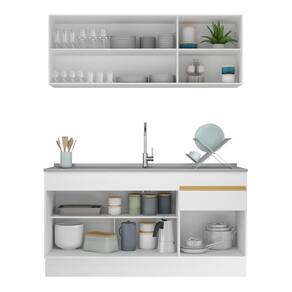 Armário De Cozinha Compacta 150cm Com Rodapé Veneza Multimóveis V2114 Branco/dourado Branco/dourado