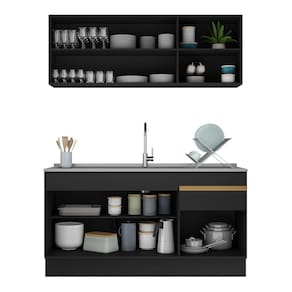 Armário De Cozinha Compacta 150cm Com Rodapé Veneza Multimóveis V2114 Preto/dourado Preto/dourado