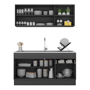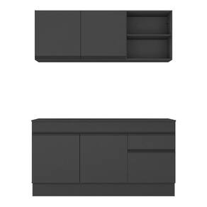Armário De Cozinha Compacta 150cm Com Rodapé Veneza Multimóveis V2114 Preto Preto