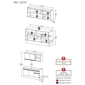 O Armário de Cozinha Compacta 150cm com Rodapé Veneza Multimóveis V2114 tem um excelente custo benefício e um amplo espaço interno. Produzido em MDP com acabamento acetinado (cerca de 20% de brilho), que garante maior durabilidade e resistência, possui corrediças metálicas (mais leveza no manuseio), rodapés, que deixam o ambiente mais estiloso, puxadores em ABS e tampo em MDP 15mm com pintura de alta resistência. Esta cozinha conta com balcão com tampo removível (compatível com pia de 150 cm) com 1 gaveta e 3 portas. *Não acompanha pia de inox.Conteúdo da Embalagem:1 (um) armário aéreo 150cm1 (um) balcão com tampo 150cm1 (um) kit com rodapésDimensões do produto montado:Altura: 203cm | Largura: 150cm | Profundidade: 32cm (aéreo) - 53cm (balcão com tampo)*Você pode consultar as medidas internas na imagem técnica do produto.*As cores do produto podem sofrer variações de tonalidade de acordo com as configurações do seu dispositivo.Imagem meramente ilustrativa. Decoração e eletros não acompanham o produto.O produto será entregue desmontado e não disponibilizamos o serviço de montagem. Acabamento: Pintura Acetinada Texturizada | Cor: Preto/Dourado | Tonalidade: Preto | Material: MDP | Referência do Modelo: V2114 | Coleção: Veneza | Instruções de Cuidado: Limpar com pano seco para retirar o pó. Não utilizar lustra móveis e produtos químicos ou abrasivos à limpeza. | Sistema de Montagem: O produto acompanha manual de montagem e kit ferragem. O produto será entregue desmontado e não disponibilizamos o serviço de montagem. | Produto Composto por: 1 armário aéreo 150cm, 1 balcão com tampo 150cm, 1 kit com rodapés, manual de montagem e kit ferragem. | Altura Montado: 203 | Largura Montado: 150 | Profundidade Montado: 53 | Tamanho (L x A x P): 150 x 203 x 53 | Peso do Produto: 64 | Garantia do Fabricante: 3 | Fabricante: Multimóveis | Requer Montagem: Sim | Quantidade de Portas: 5 | Quantidade de Gavetas: 1 | Quantidade de Prateleiras: 3 | Quantidade de Puxadores: 6 | Quantidade de Pés: 6 | Porta com Vidro: Não | Corrediça: Metálica | Material do Puxador: ABS | Material dos Pés: Polipropileno | Acompanha Pia Inox: Não | Balcão 120 cm compatível para uso de pia: Não | Tampo Incluso: Sim | Quantidade de Tampos: 1 | Material do Tampo: MDP | Espessura do Tampo: 1.5 | Com Prateleiras: Sim | Produto: Cozinha Compacta | Tipo: Modular | Altura (cm): 203 cm | Largura (cm): 150 cm | Profundidade (cm): 53 cm | Estado de Origem: RS | Produto precisa de Montagem?: Sim, sugerimos a contratação do nosso serviço de montagem (para os CEPs em que o serviço está disponível) ou de algum profissional experiente de sua preferência | Ubicação do móvel: Não aplica | Altura do Produto com Embalagem: 30 | Largura do Produto com Embalagem: 65 | Comprimento do Produto com Embalagem: 155 | Peso do Produto com Embalagem: 64 | Nome do Produto no Fornecedor: Armário de Cozinha Compacta 150cm com Rodapé Veneza Multimóveis V2114 Preto/Dourado | Descrição do Tamanho: (L x A x P): 150 x 203 x 53 cm | Tempo de Garantia: 3 meses | Destaque 1: MDP com acabamento acetinado: maior durabilidade e resistência. | Destaque 2: Balcão com tampo removível: pode ser utilizado com pia. | Destaque 3: Corrediças metálicas (mais leveza no manuseio) e pés retrô em polipropileno: ambiente mais estiloso. | Destaque 4: Tamanho do Produto Montado (L x A x P): 150 x 203 x 53 cm | Destaque 5: Os módulos são individuais e você pode montar da maneira que se adaptar melhor ao seu ambiente. Garantia de 90 dias contra defeitos de fabricação. | Marca: Multimóveis | Acessórios incluídos: N/A Cor: Preto