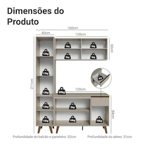 - 52 cm de profundidade nos balcões e paneleiro e 31 cm nos aéreos
