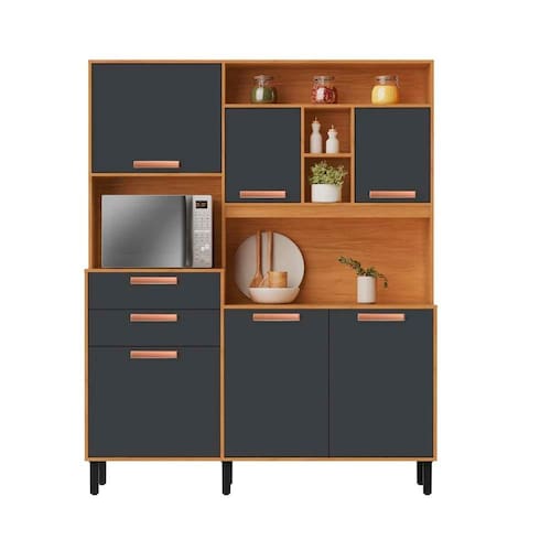 Armário de Cozinha Compacta 160cm Nápoles Grafite/Madeira Itatiaia