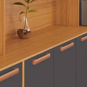 Exclusividade e Modernidade: Puxadores exclusivos com acabamento metalizado rose gold. Sofisticação com resistência e praticidade.