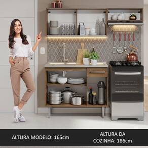 Além de super moderna, a cozinha é resistente e durável, produzida com materiais de alta qualidade. Possui dobradiças e corrediças metálicas, puxadores com alumínio e pés em PVC com regulagem para pequenos desníveis no piso.