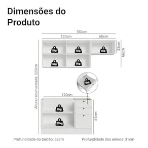 Profundidade: 52 cm (módulos inferiores) 31 cm (aéreos)